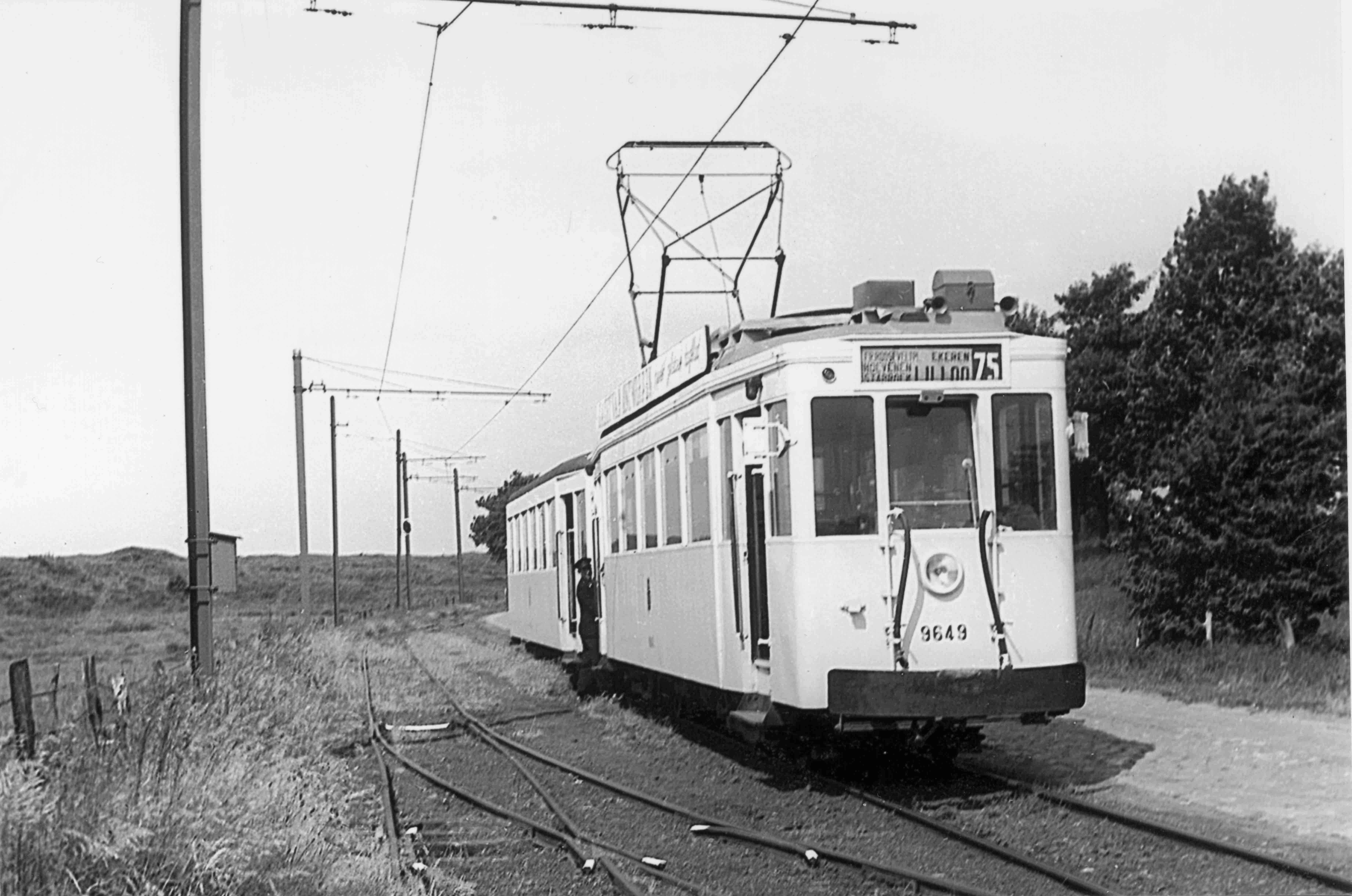 Op het kruispunt van de tramlijnen 75 & 77 hadden de NMVB, tegenover café/ boerderij Blauwhoef, hun stelplaats.